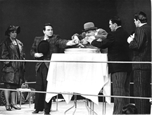 In Das Kleine Mahagonny (The Little Mahagonny), a shorter version of the original The Rise and Fall of the City of Mahagonny, Ekkehard Schall's character eats himself to death.